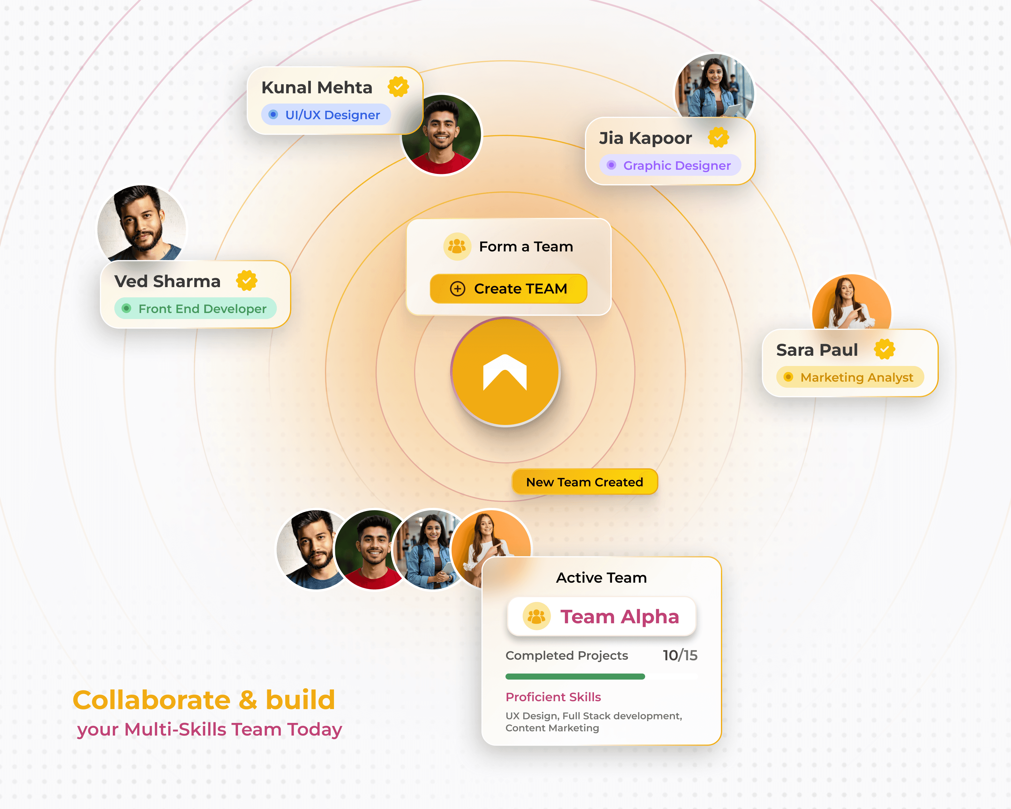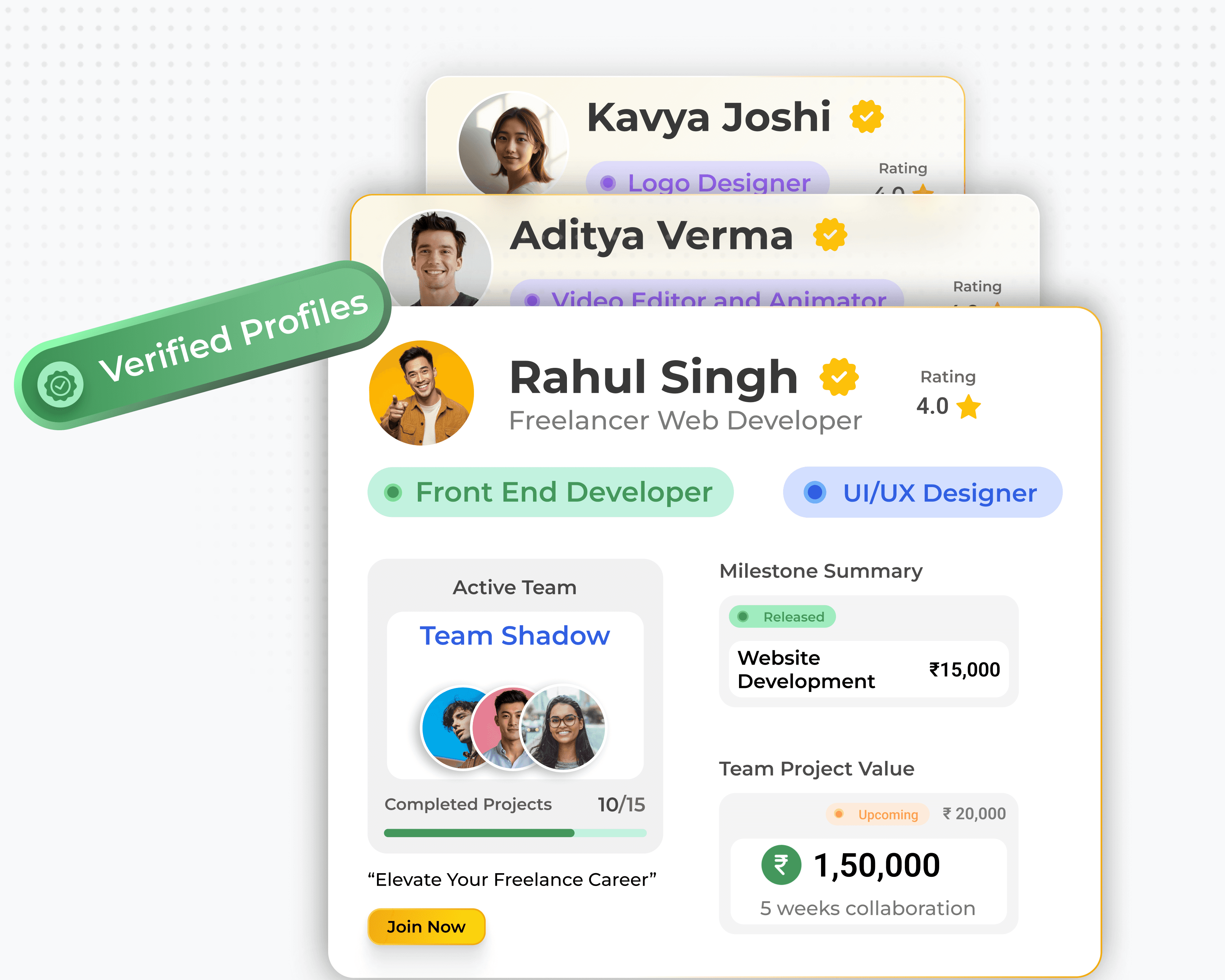 Freelancers can work together as structured teams, combining skills to deliver complete project outcomes.