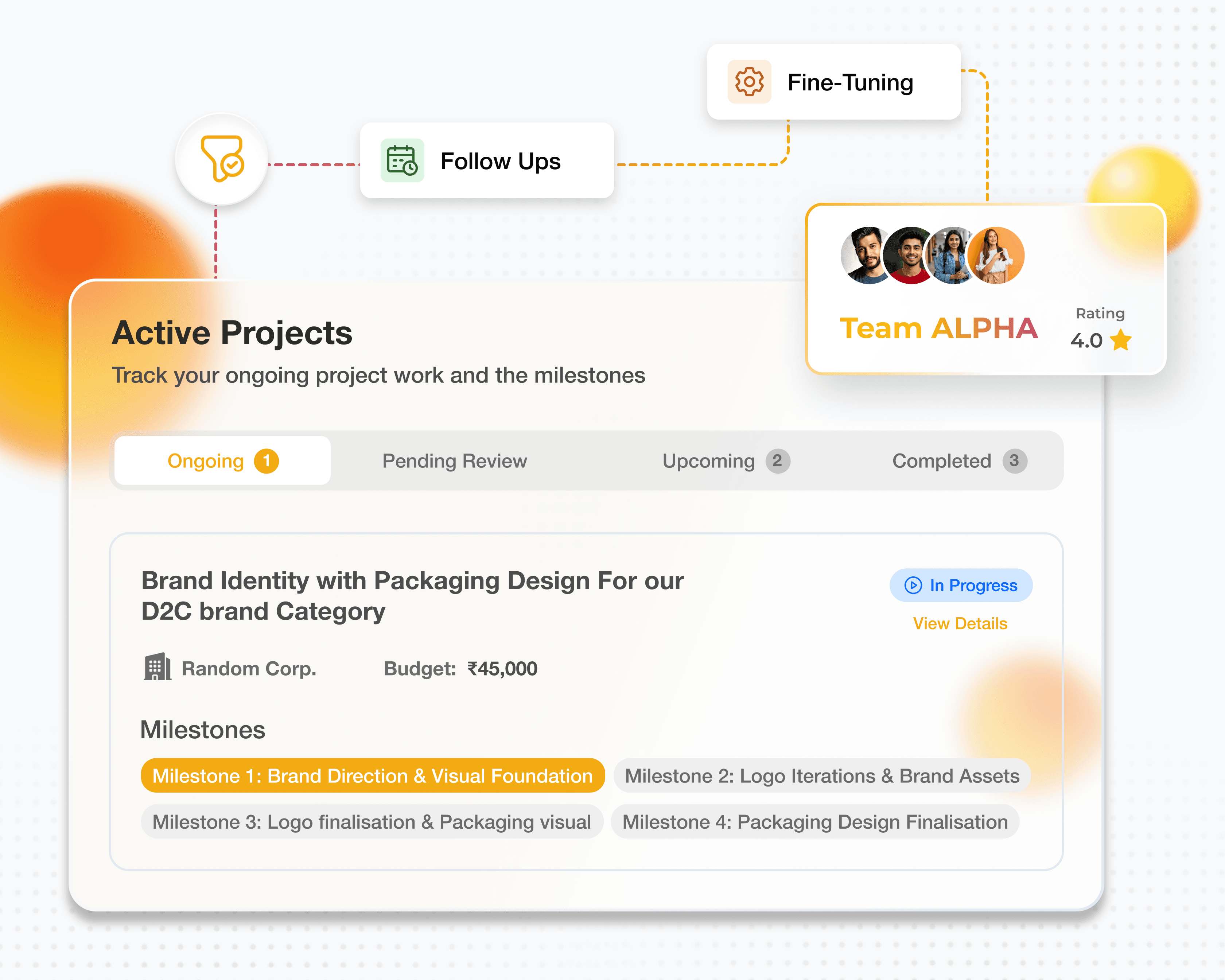 Skip the endless search for freelancers. Work with aligned teams and individuals ready to execute and deliver results.