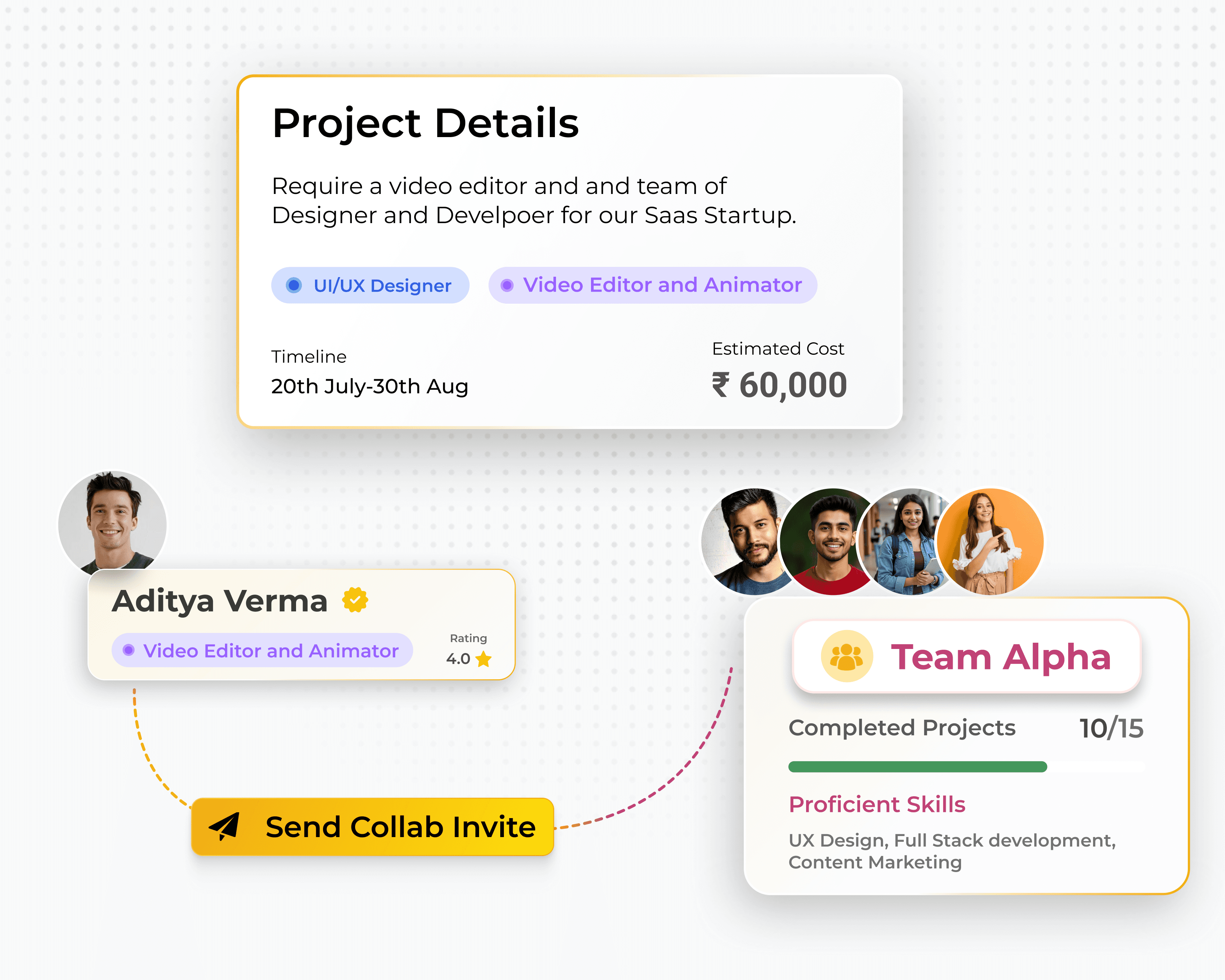 Work with aligned freelance teams that collaborate, deliver faster, and stay accountable — without agency overhead.